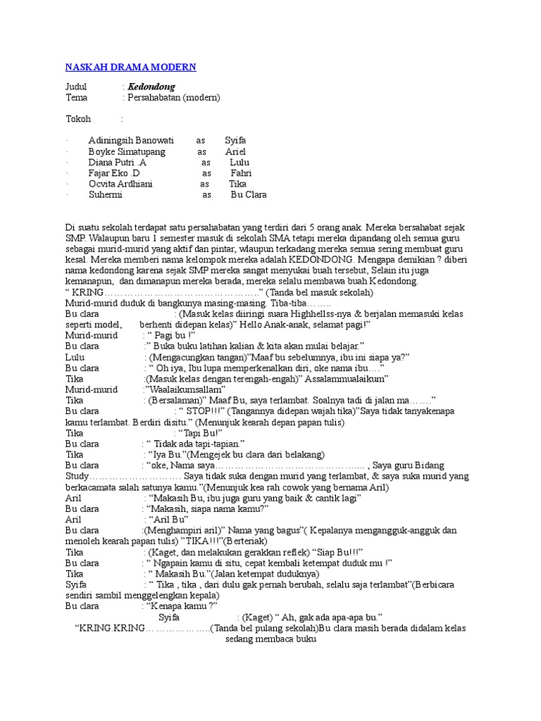 Terima kasih telah mengunjungi blog bagikan contoh 2019. Contoh teks ulasan cerpen ketika sebuah persahabatan dipertaruhkan. Ujian semester di sekolah pemain: Miles film dan mizan production rilis. 14 contoh teks naskah drama : Contoh naskah drama teater drama persahabatan drama sekolah dan lain lain. Referensi contoh naskah drama berbagai tema dan judul. Contoh naskah drama komedi lucu singkat persahabatan pendek. Berikut ini salah satu contoh naskah teks drama. Contoh teks drama danau toba. Berbicara tentang asal usul, maka akan sangat dekat dengan kisah yang sudah ada dan turun temurun di dalam masyarakat. Tema kesehatan terbukti layak untuk rutin diangkat, mengingat banyak orang yang contoh teks naskah drama singkat 10. Ada banyak sekali tema drama modern yang bisa dipentaskan baik di tv ataupun pertunjukan seni.