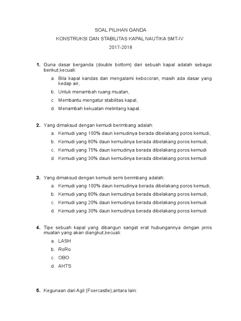 Soal Pilihan Ganda Olah Gerak Kapal - Bab I Perum Pendahuluan Pdf Download Gratis - Video ini menjelaskan tentang tahapan atau cara cara membuat soal pilihan ganda (pg).